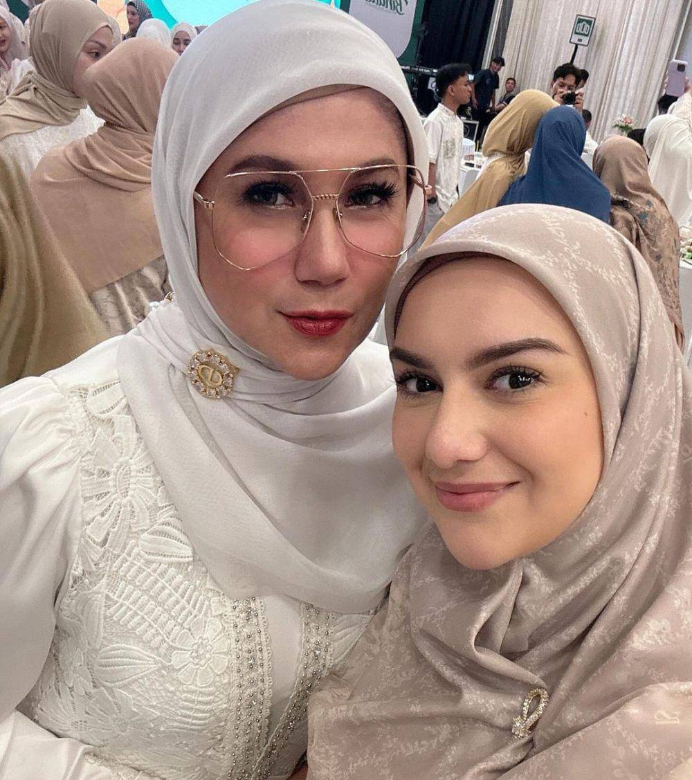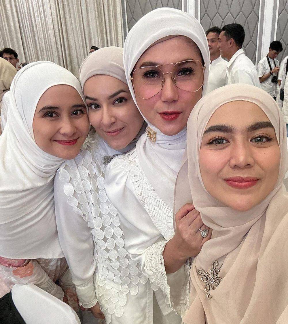 2. Dengan gamis dan hijab warna putih, Marini terlihat awet muda. Seperti kakak jika bersandingan dengan Irish Bella, nih