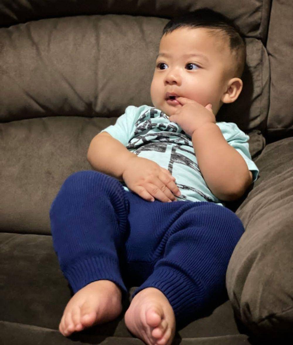 3. Raden Erlangga Danendra Brotoseno lahir pada 25 Juni 2021 lalu. Kini ia sudah 1 tahun 4 bulan, lho