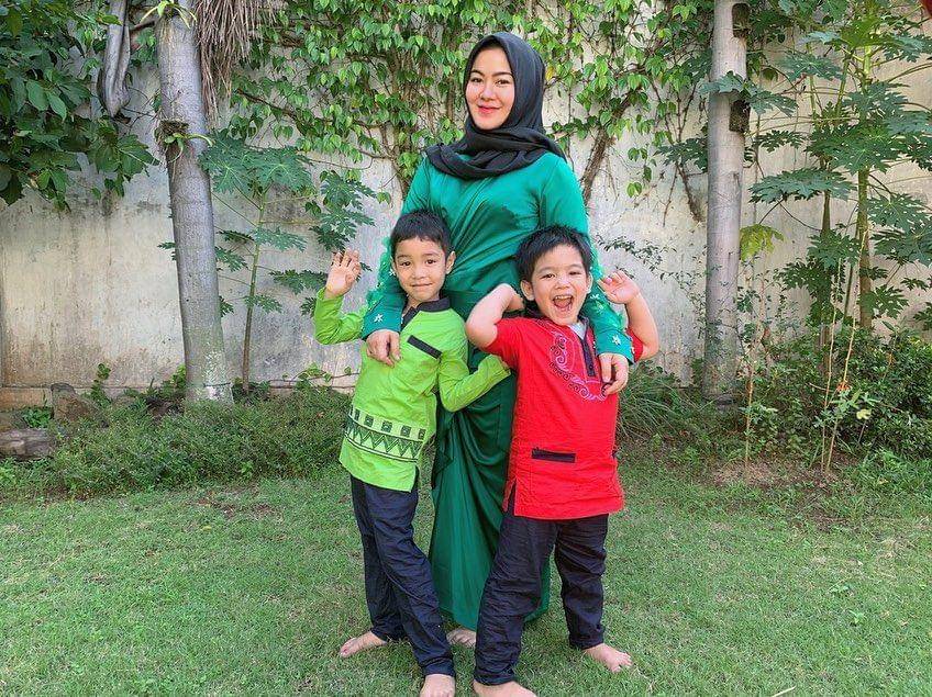 3. Ketika perayaan hari raya Idul Fitri kemarin, Sherrin bersama kedua anaknya tampak senang menyambut hari raya ini, ya!