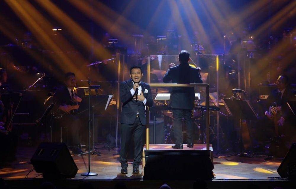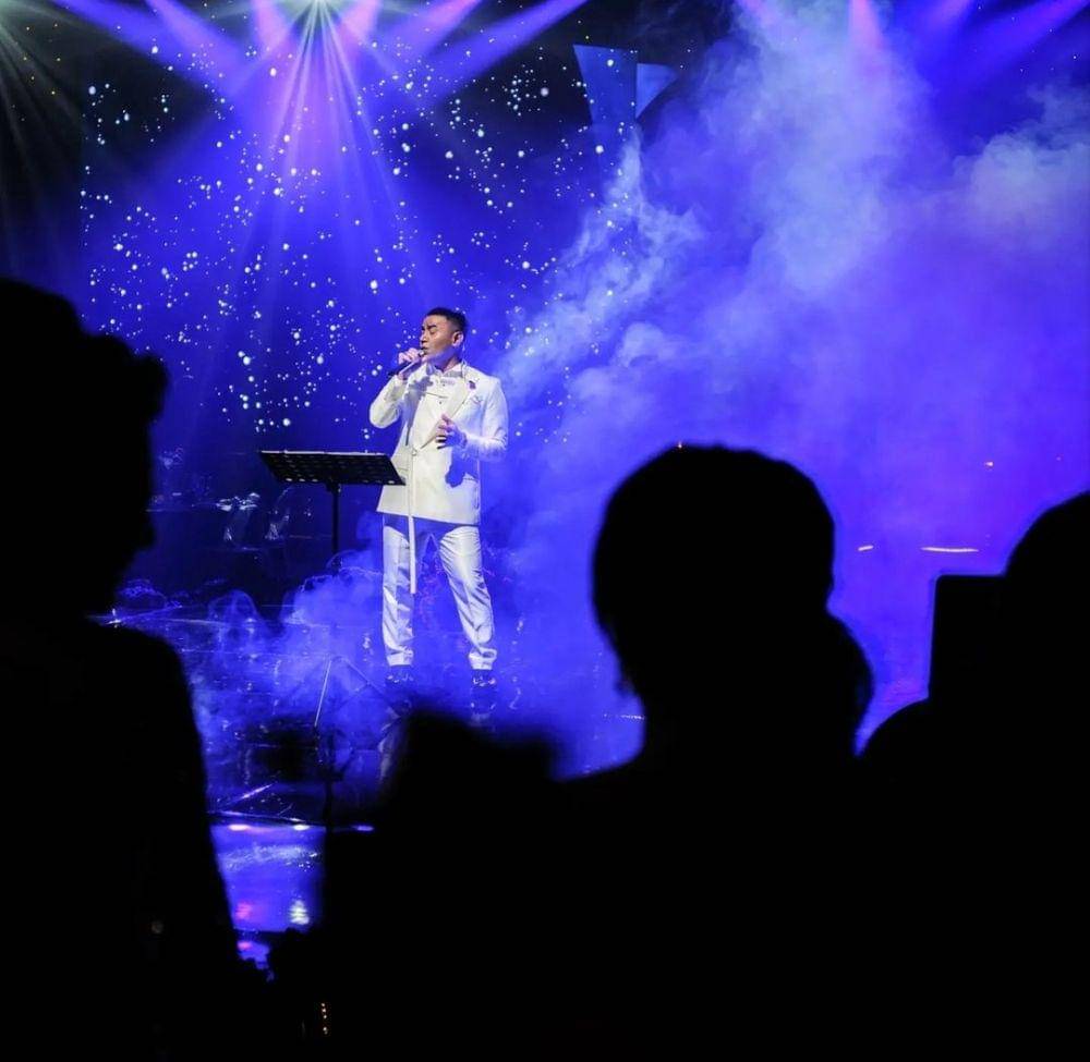 1. Begini potret seru Judika saat tampil di atas panggung. Latar bertuliskan namanya kian menambah kemegahan panggung