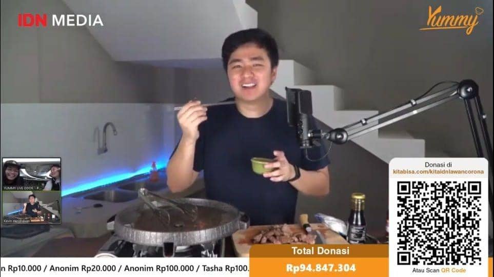 YouTube Yummy IDN live: Masak Bareng Artis #MasakDiRumahAja hari pertama pada Sabtu (4/4) ditutup dengan aksi dapur Kevin Hendrawan. Influencer yang satu ini memilih resep Korean BBQ yang terkenal dengan cita rasa gurih manis buat disajikan di Yummy IDN live: Masak Bareng Artis #MasakDiRumahAja.