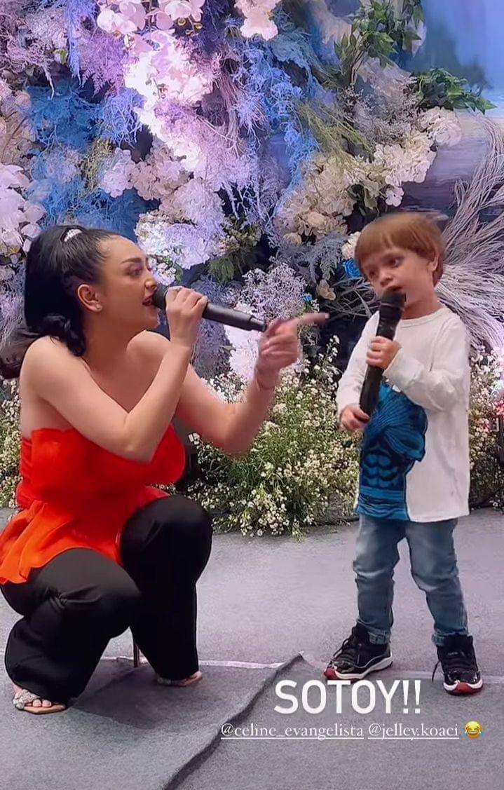 6. Gelar acara Natal secara meriah, Celine Evangelista eksis nyanyi bareng putra bulenya, Koa Lewis