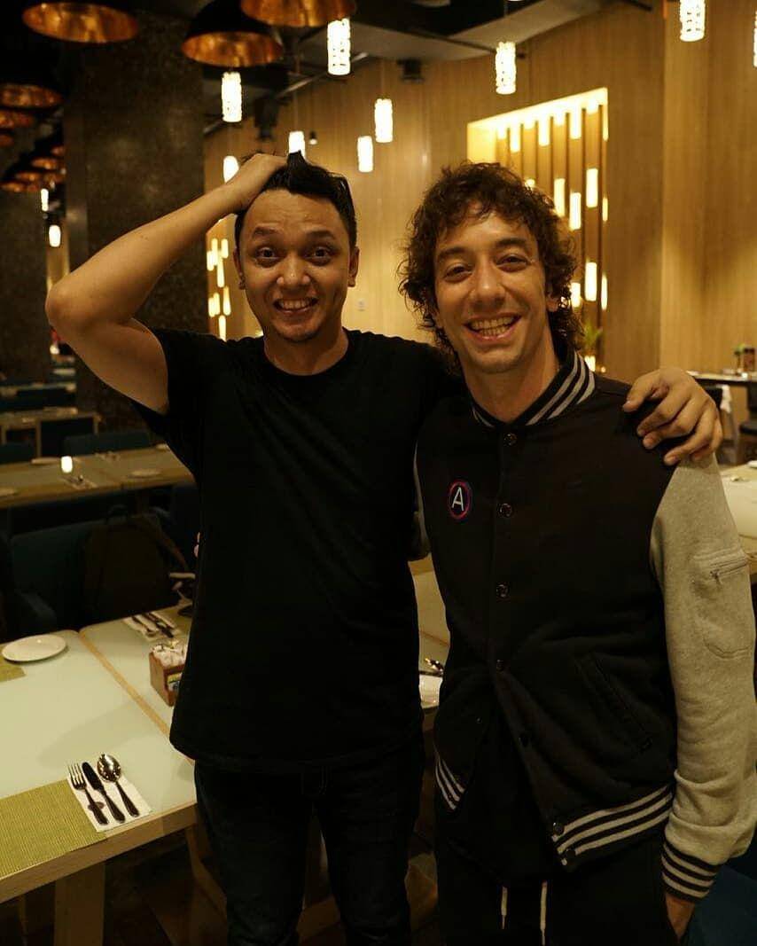 4. Vokalis Barasuara, Iga Masardi senang banget nih bertemu dengan idolanyaAlbert Hammond Jr sebelum manggung