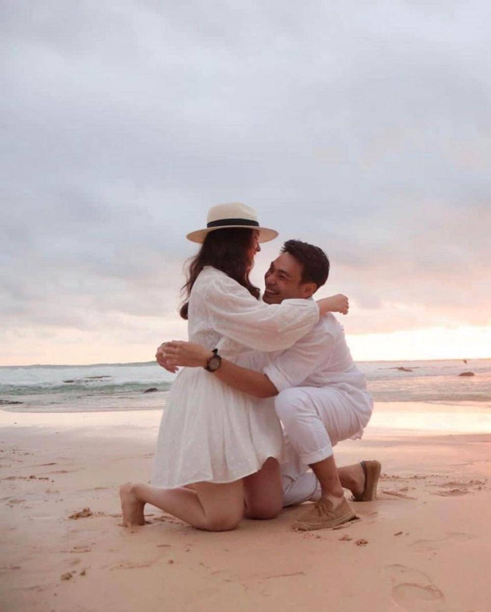 7. Keduanya juga membagikan momen saat memakai baju serba putih di tepi pantai