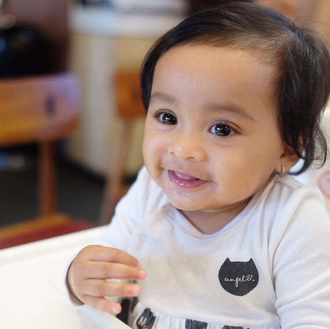 Anak pertama dari aktris Laura Basuki ini tidak hanya memiliki pipi yang chubby. Gigi kelincinya juga lucu. Cute banget deh.