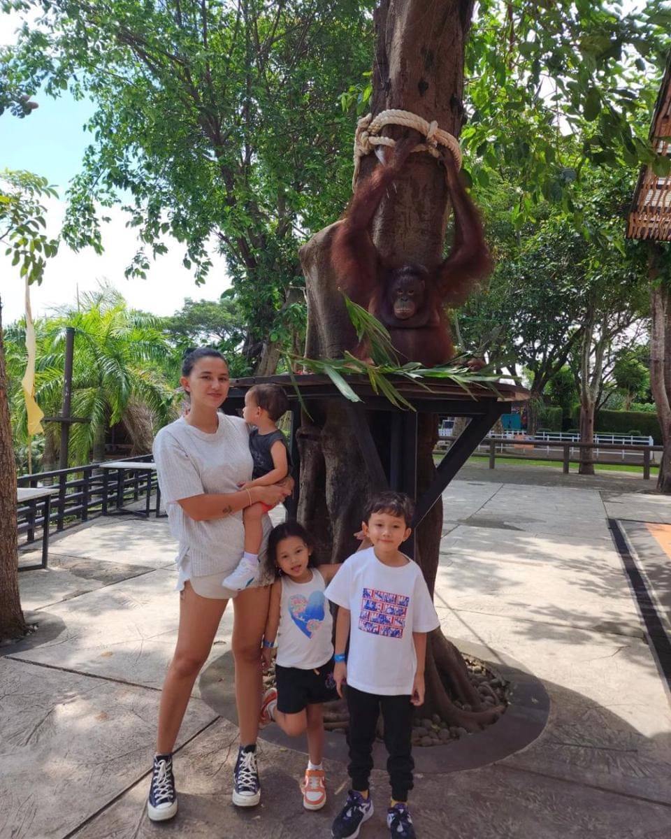 4. Tak hanya sea world, Dahlia juga terlihat mengajak ketiga buah hatinya untuk mengenal hewan dengan berkunjung ke kebun binatang
