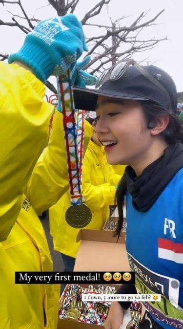 4. Bukan sekedar rekreasi, Febby ternyata berhasil finish strong dan mendapatkan medali