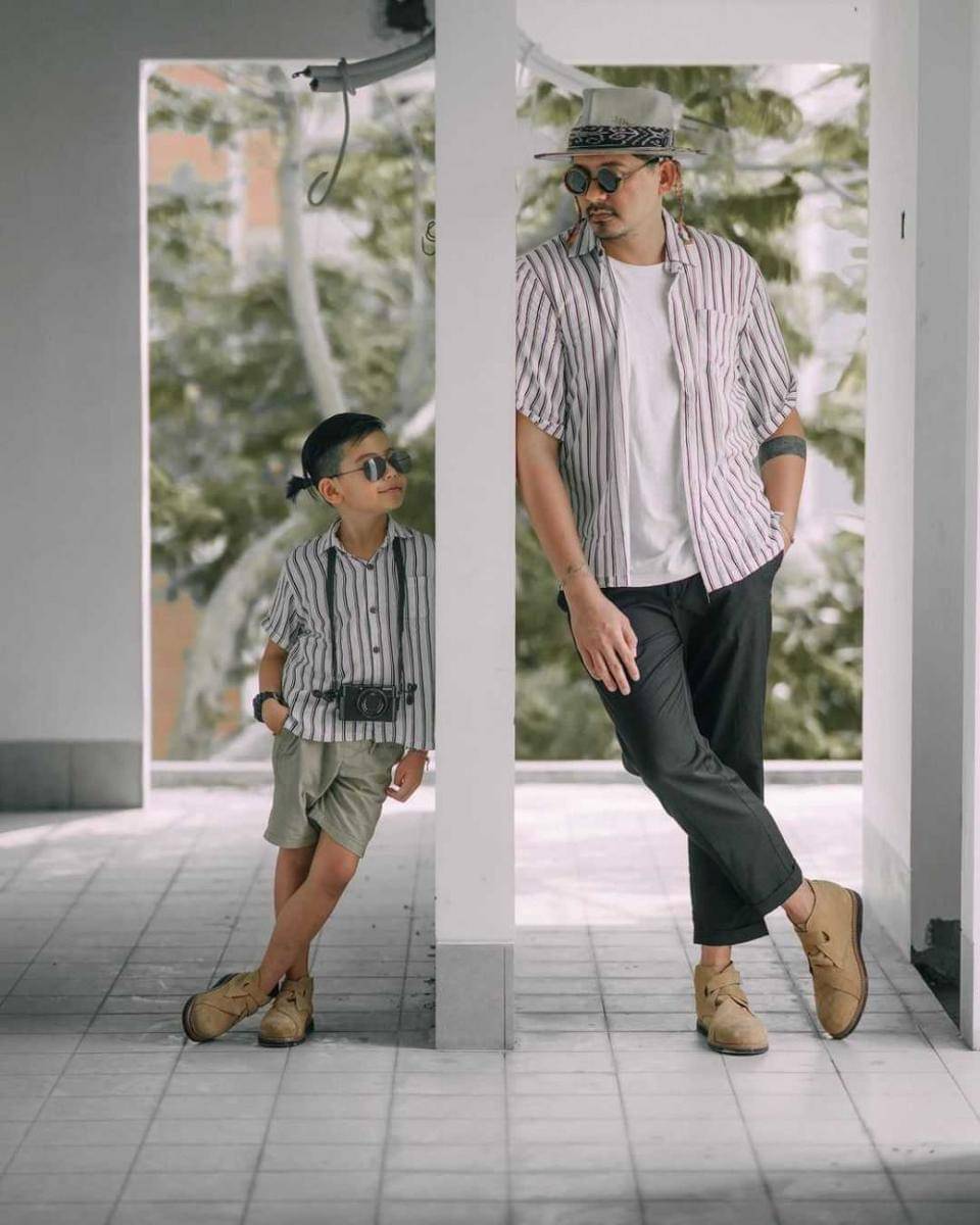 2. Tampil dengan outfit kembar, siapa nih yang setuju jika pasangan ayah dan anak yang satu ini justru terlihat bak kakak adik?