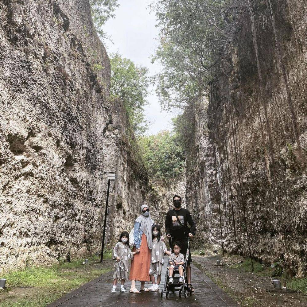 4. Keceriaan juga terpancar saat keluarga Desta selfie di depan Garuda Wisnu Kencana