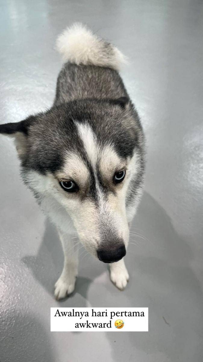 2. Anjing jantan dengan ras campuran Pomeranian Husky ini kerap menemani Sunny saat di rumah