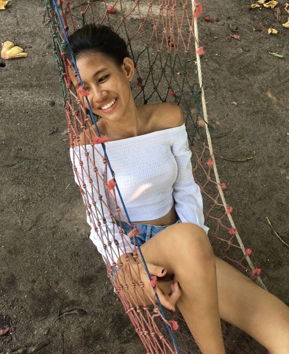 3. Kamu bisa tampil manis saat liburan di pantai memakai mengenakan crop top model sabrina dengan short denim seperti Shenina
