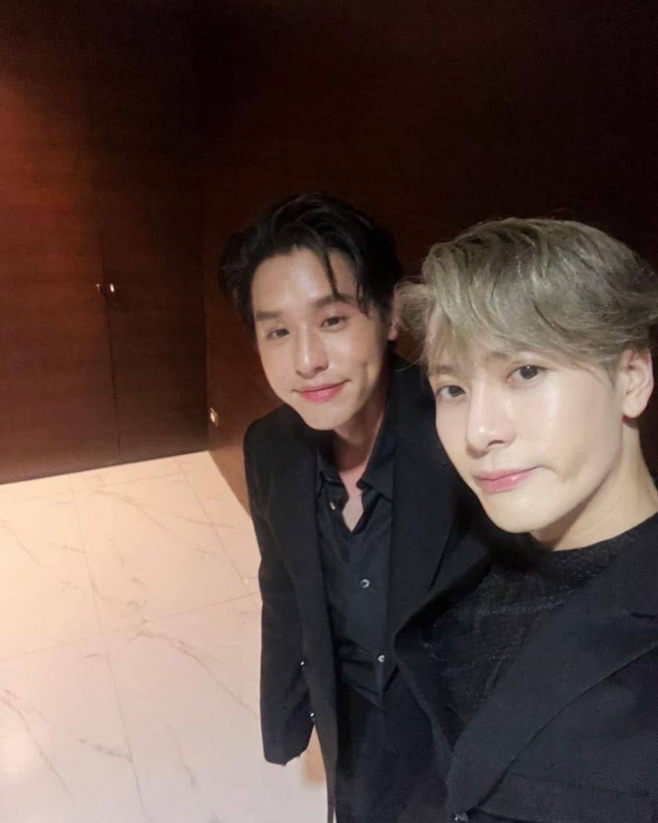 5. Aktor ONE31 yang turut hadir di opening brand fashion Jackson, Bright Norraphat juga membagikan potret akrabnya bersama Jackson