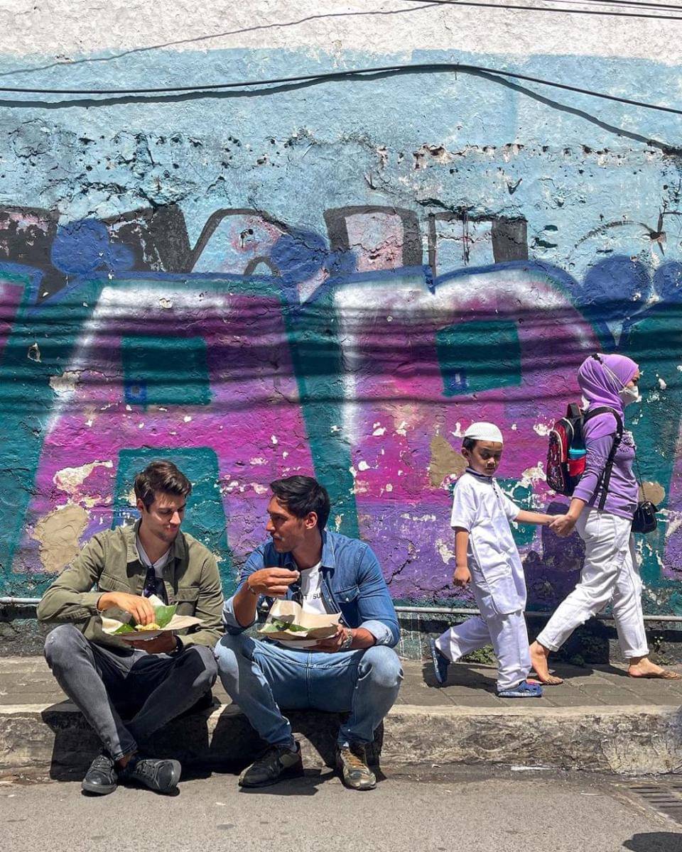 3. Meski makan di pinggir jalan, Richard dan Marko tetap bisa menikmati masakan daerah setempat saat berada di Pasar Lama Bogor