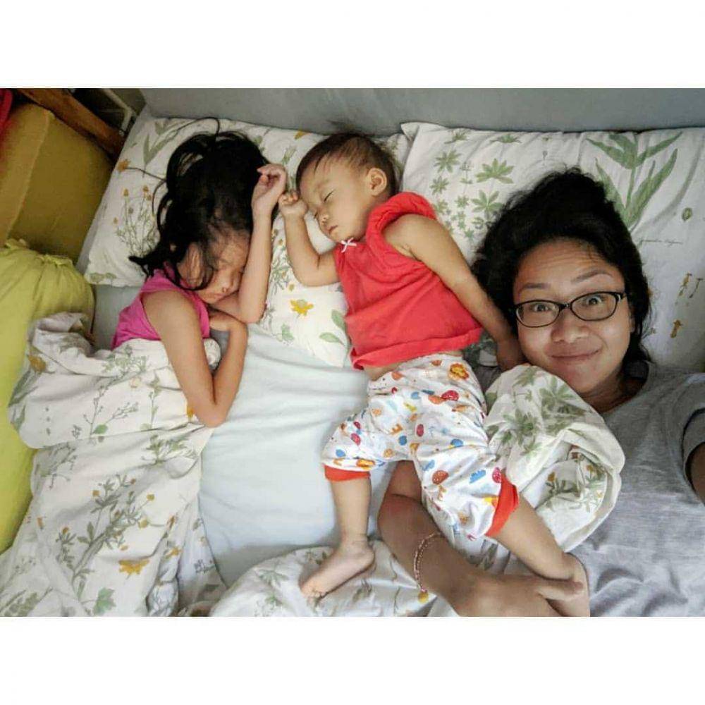 8. Kebersamaan Cici Panda bersama kedua buah hatinya ketika bangun tidur, nih!