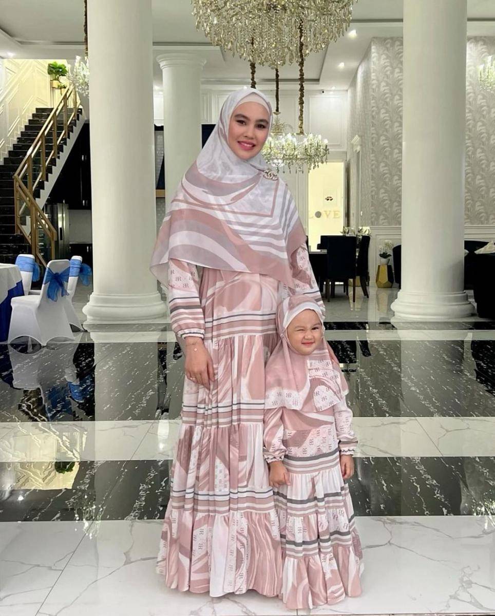 5. Yang terbaru, Kartika dan sang putri baru saja tampil dengan busana muslimah kembar saat syuting di salah satu acara TV