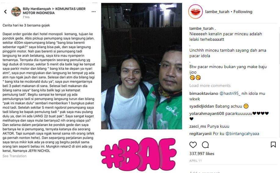 9. Dari curhatan seorang driver ojol, diketahui Jefri Nichol memiliki rasa peduli yang tinggi