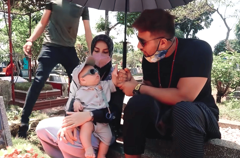 10 Momen Ammar Zoni Ajak Baby Air Ziarah ke Makam Mendiang Si Kembar