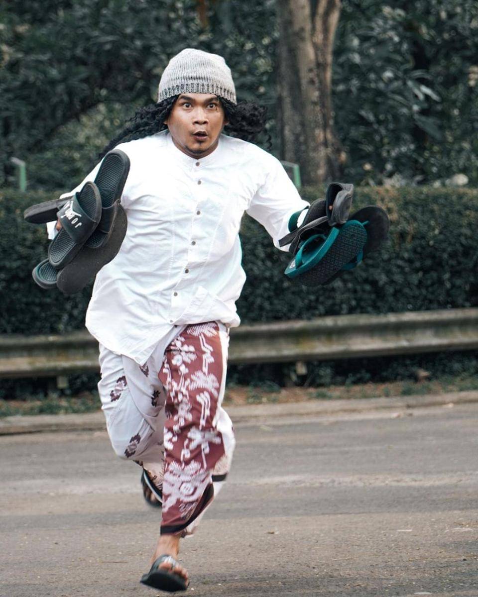 8. Lelah mengangkat krat-krat botol, pemain film Ashiap Man ini malah menyerah kalah