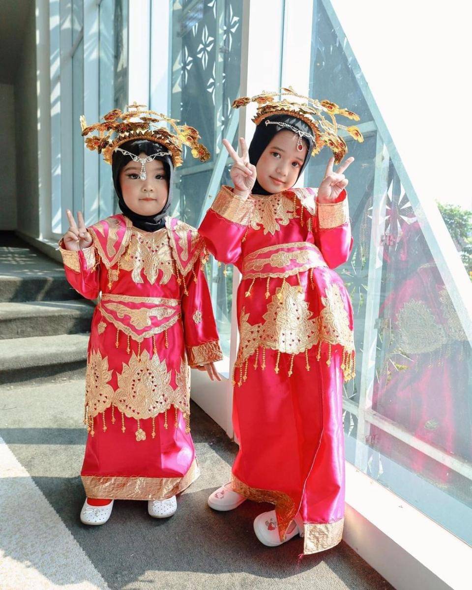 1. Duduk di bangku TK A, Uti yang kenakan pakaian adat Aceh lengkap pakai hijab siap tampil di pentas seni acara perpisahan sekolah