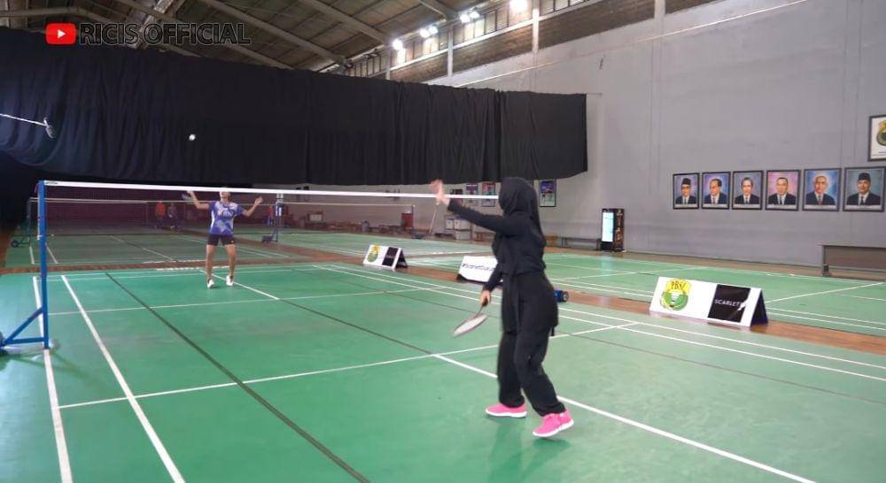 2. YouTuber satu ini tampak begitu bahagia dan semangat main badminton