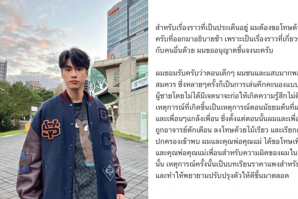 Bintang drama Bad Buddy ini mengaku sangat menyesali perbuatannya. Kejadian tersebut menjadi pelajaran yang berharga baginya.