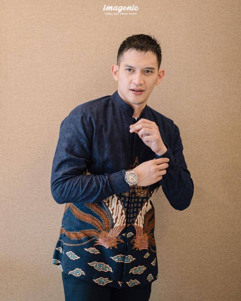 5. Batik juga dipilih oleh Rezky Aditya saat melamar Citra Kirana. Motif di bagian tengah membuat outfit simpelnya ini terlihat keren
