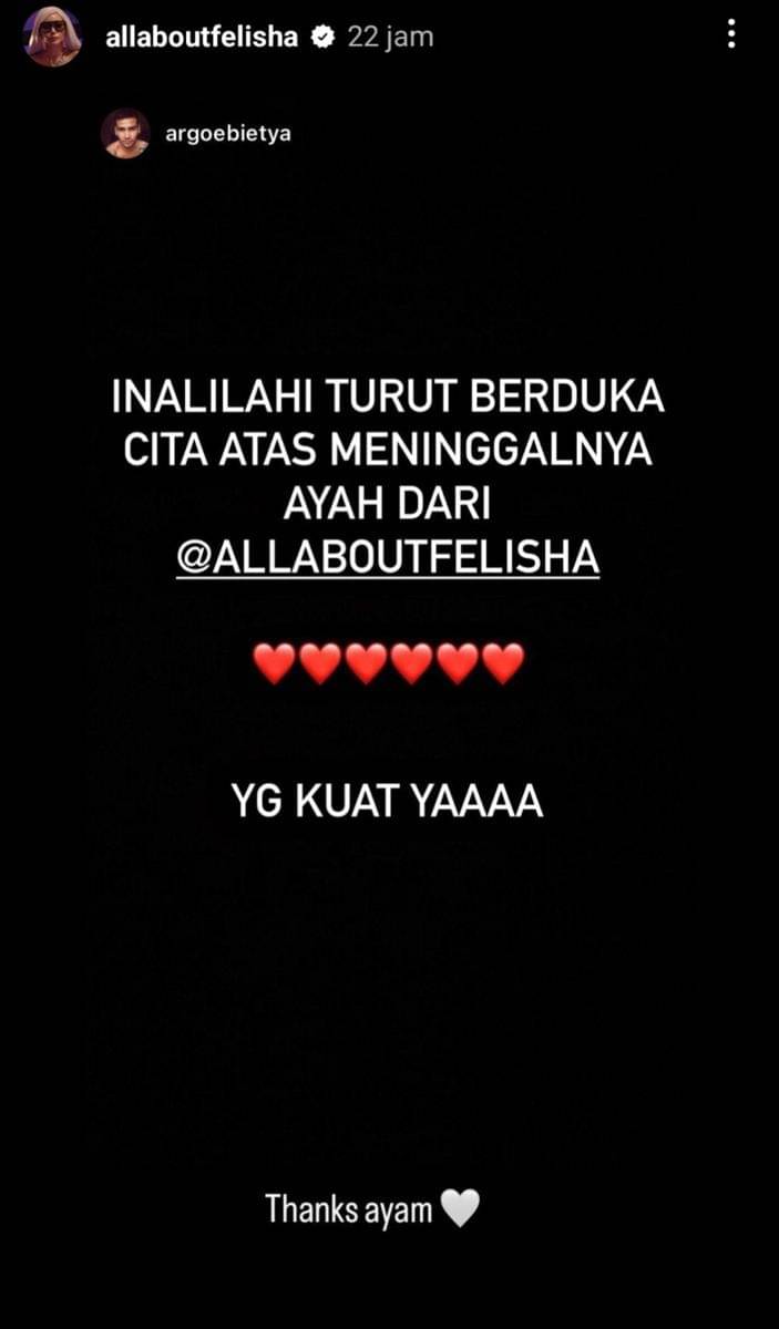 3. Sejumlah rekan lainnya juga mengutarakan duka cita kepada Ratu Felisha via sosial media. Semoga kuat dan tabah, ya