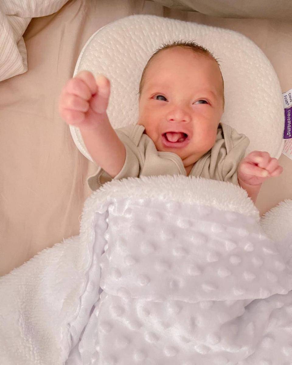 2. Bayi yang mirip banget dengan ayahnya ini diberi nama Anzel Maverick Xie. Senyum manisnya bikin meleleh, nih