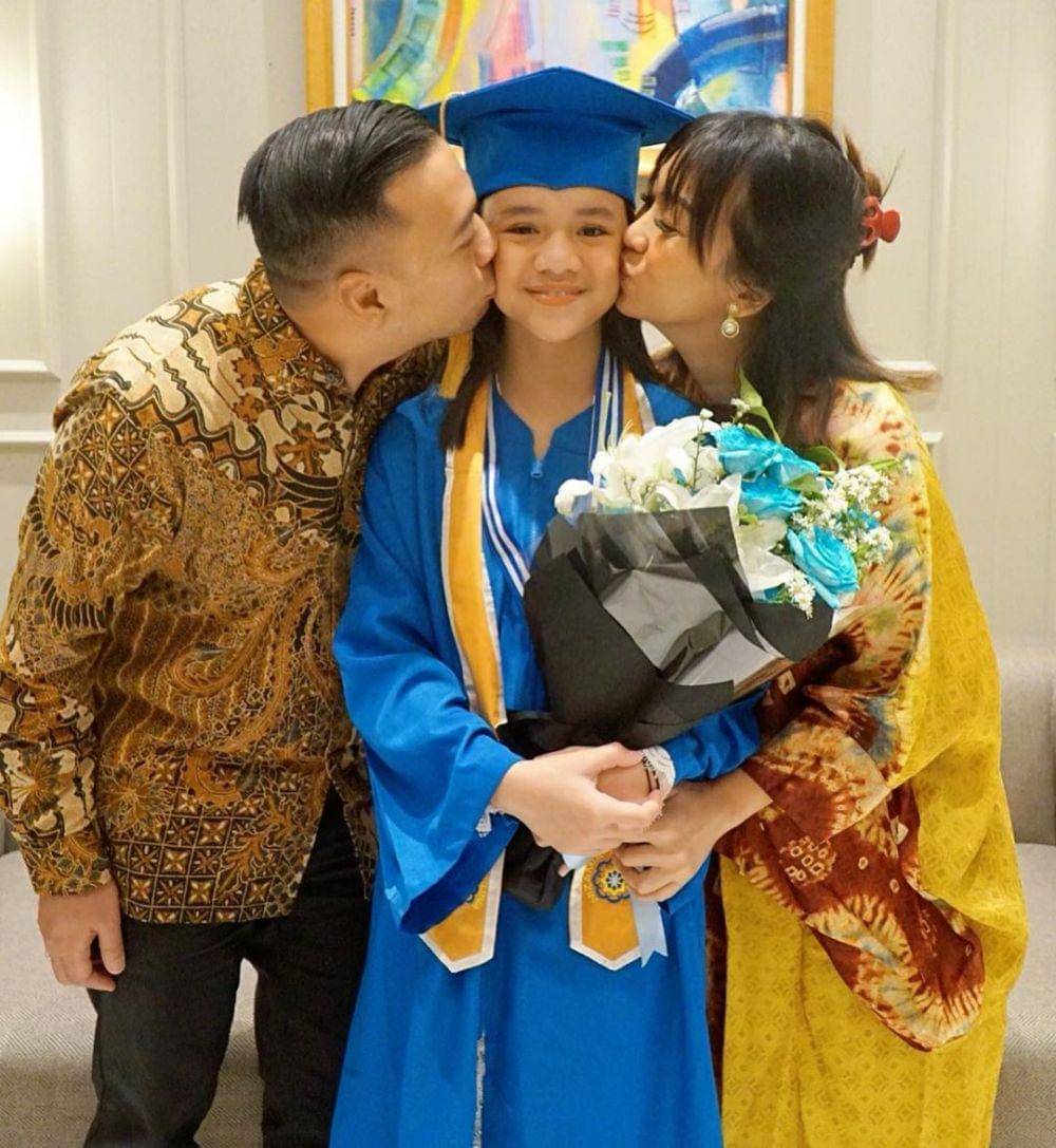 8. Siap jadi anak SMP, begini nih potret bahagia Neona saat merayakan momen kelulusan SD-nya bersama kedua orangtuanya
