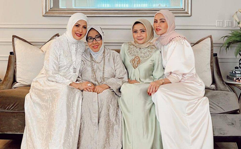 1. Olla Ramlan merayakan lebaran bersama ibu beserta saudara perempuannya
