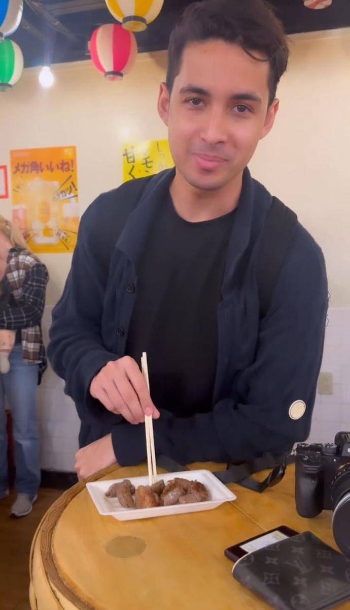 6. Sama seperti kekasihnya, Salim juga tampak antusias mencicipi berbagai makanan khas Jepang
