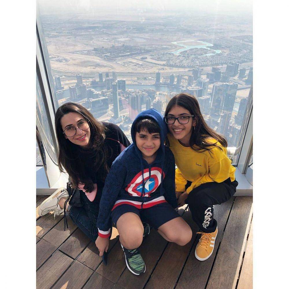 11. Anak Karisma Kapoor, Samiera Kapur dan Kiaan Raj Kapur, tampak berlibur bersama di gedung tertinggi Dubai, Burj Khalifa