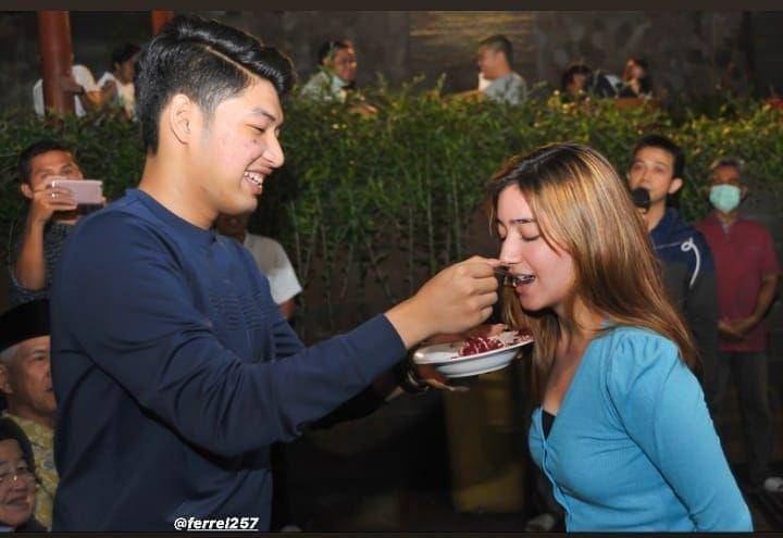 6. Dannia menerima suapan kue dari mantan kekasih Salshabilla Adriani tersebut