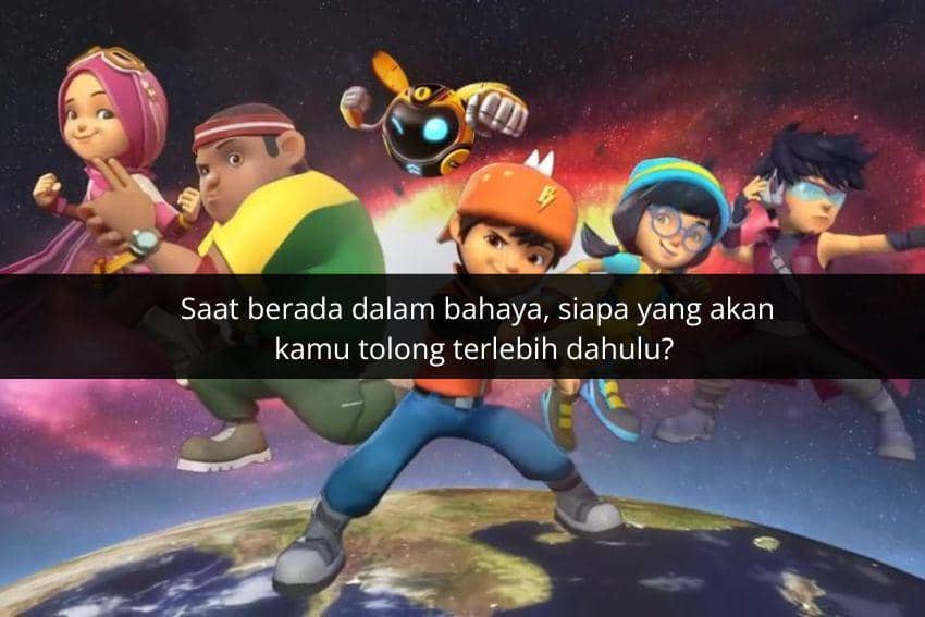 Serial BoBoiBoy menceritakan tentang sekumpulan anak-anak yang menyelamatkan dunia lewat kekuatan super mereka. Kamu pun punya kesempatan untuk mencoba bergabung ke geng BoBoiBoy yang keren. Coba jawab tes ini untuk tahu hasilnya!