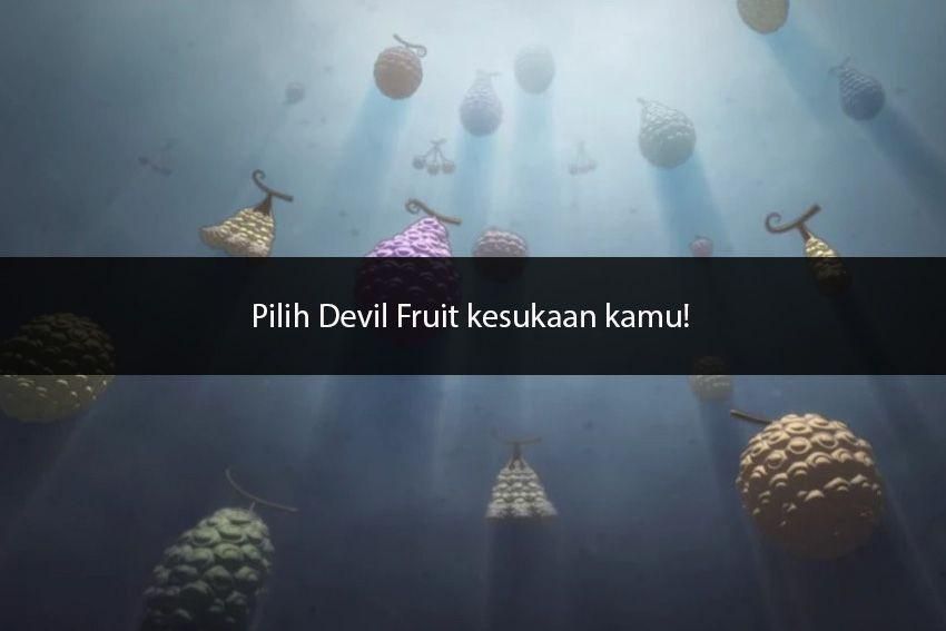 Banyak karakter One Piece yang kekuatannya berasal dari Devil Fruit. Penasaran gak sih, kalau kamu masuk semesta One Piece, kekuatan Devil Fruit macam apa yang bakal kamu dapatkan? Pilih dulu yuk Devil Fruit yang kamu minati berikut.