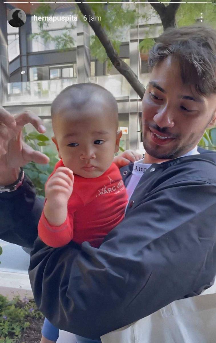 3. Nggak hanya berfoto, Refal juga menggendong Rayyanza, lho. Bahagia banget ya, wajah pemeran Bian dalam Wedding Agreement ini!