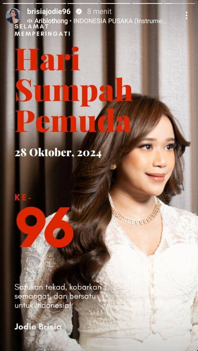 12. "Satukan tekad, kobarkan semangat, dan bersatu untuk Indonesia," tulis Brisia Jodie diunggahan terbarunya