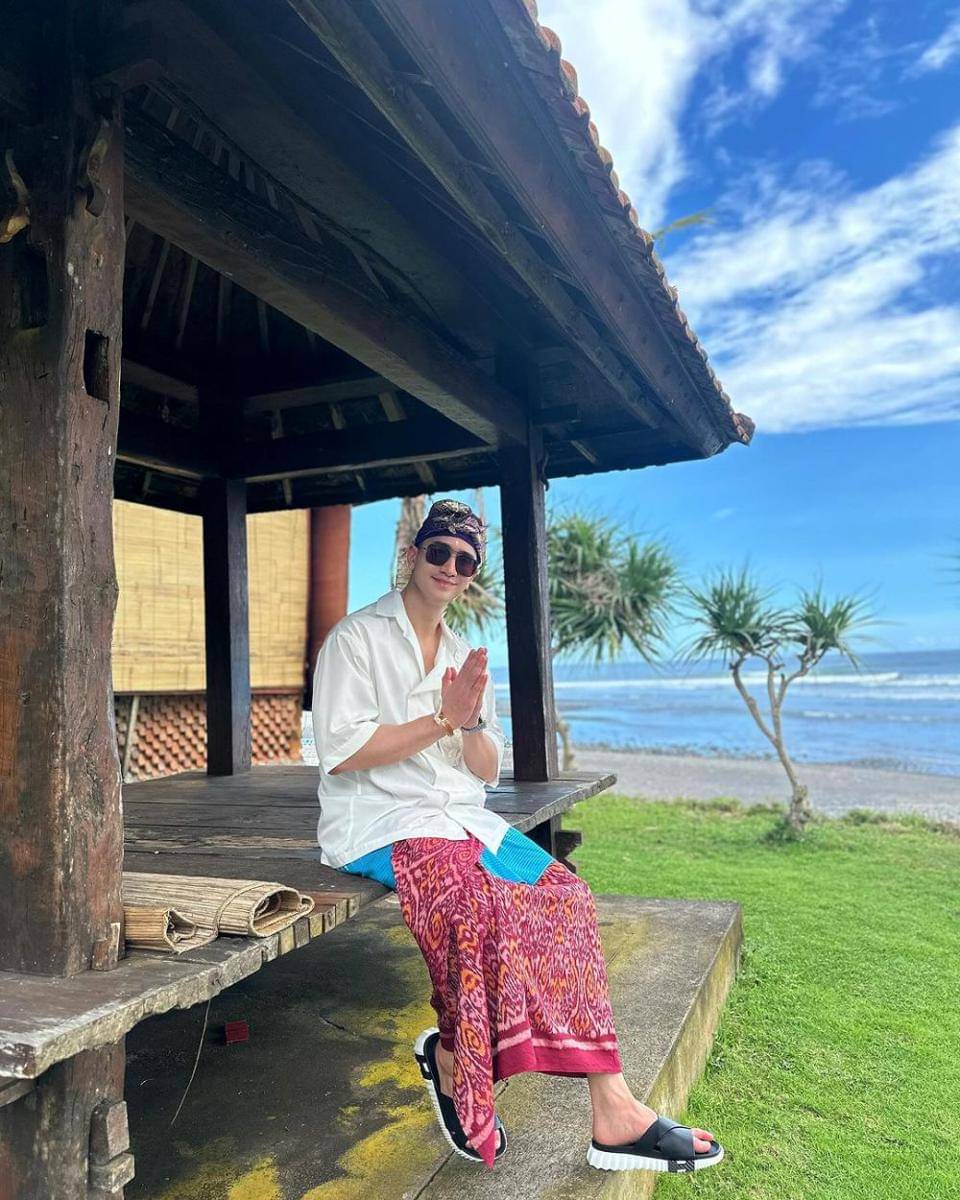 5. Verrell juga memakai pakaian khas Bali lengkap dengan udengnya. Udah kayak warga lokal, ya!
