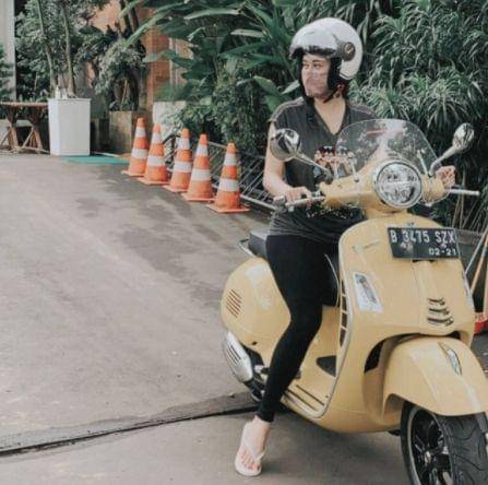 8. Kalau yang ini saat Aura Kasih mengendarai motor Vespa, kece parah!