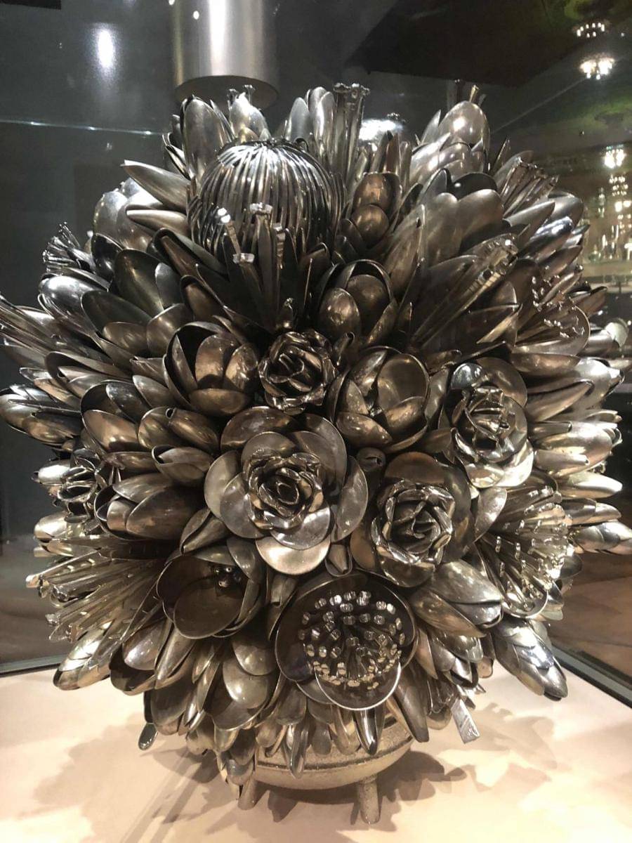 3. Gak cuma patung buaya, ada juga bunga yang terbuat dari alat makan. Level kreativitas sang kreator patut diacungi jempol, nih
