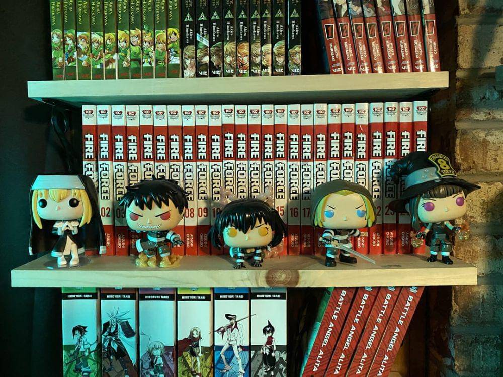 2. Manga yang ada di lemari hingga figur Pop! para karakter Fire Force adalah isi dari koleksinya. Terlihat ada Shinra, Arthur, Iris, Tamaki, dan Maki