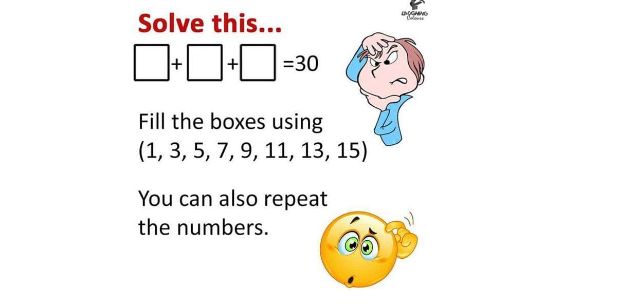 Isilah titik-titik di atas menggunakan (1, 3, 5, 7, 9, 11, 13, 15). Harap diingat, kamu boleh mengulang penggunaan angka-angkanya.
