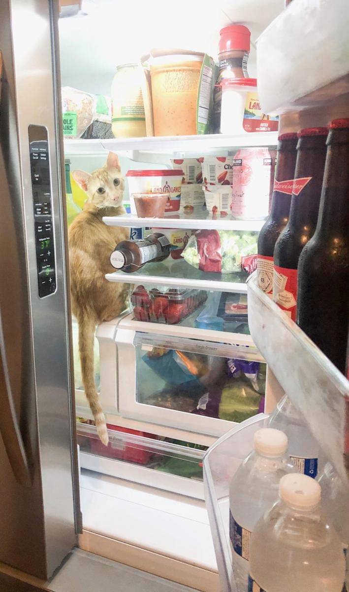 9. Dia langsung ngeluarin ekspresi gemas pas ketahuan bersantai di kulkas