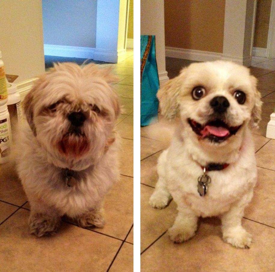 1. Setelah dicukur, anjing yang tampak berantakan ini sekektika menjadi imut!
