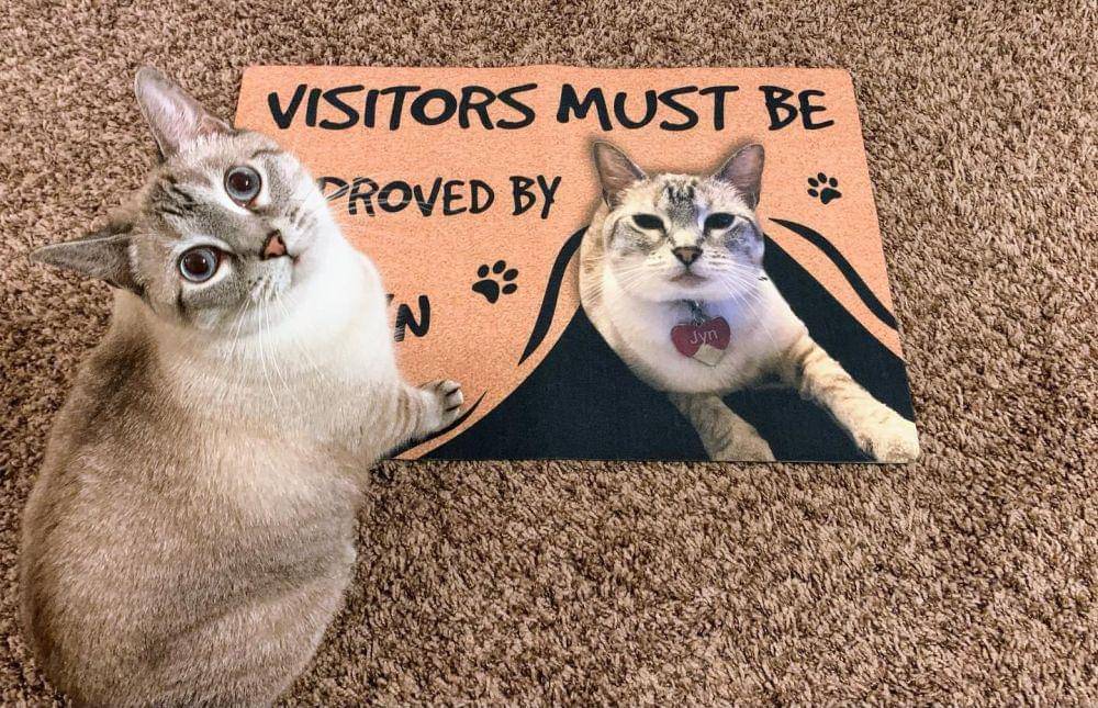 4. Ini juga sama kayak yang di atas, pemilik mereka niat banget bikin keset kaki dengan desain muka kucingnya, ya!