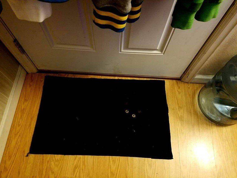 5. Pantas dicari-cari gak ketemu, ternyata dia kamuflase di keset kaki kamar mandi