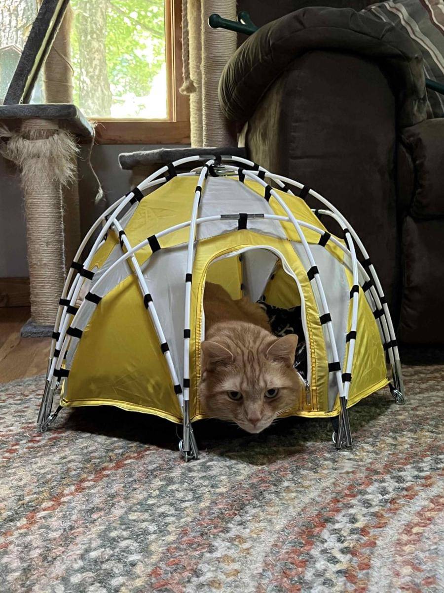 7. Gak kayak kucing-kucing lain, dia lebih memilih nongkrong di tenda di luar ruangan kayak orang-orang