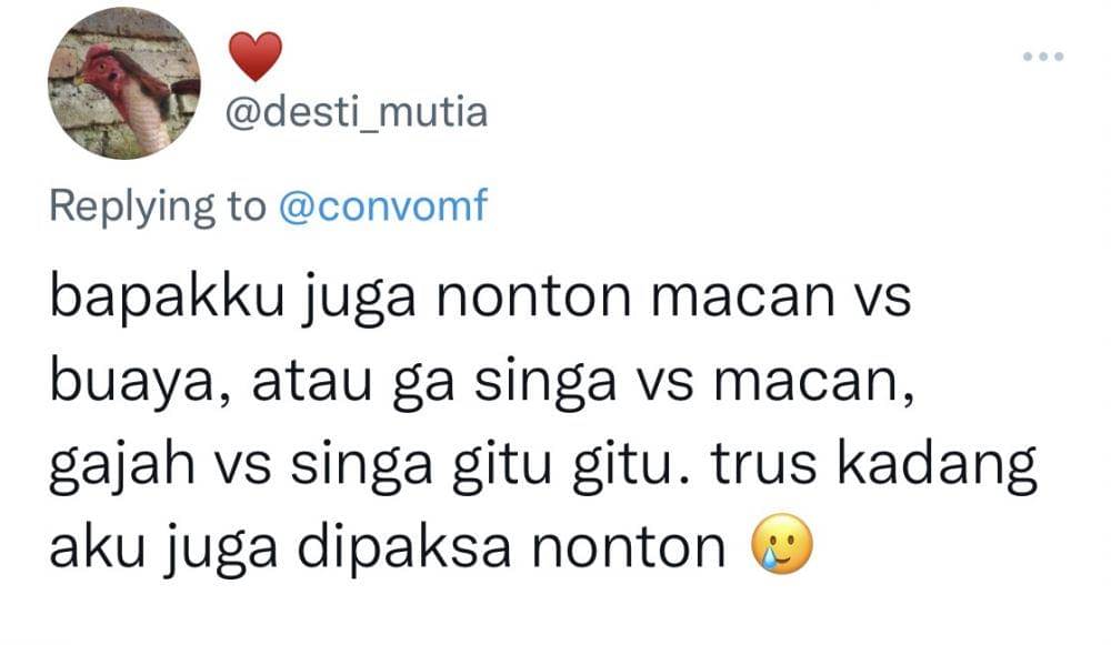 5. Anak kecil suruh nonton macan vs buaya sih masih relate. Lain cerita, kalau anaknya sudah besar, terpaksa nonton bareng deh, demi dibeliin kuota