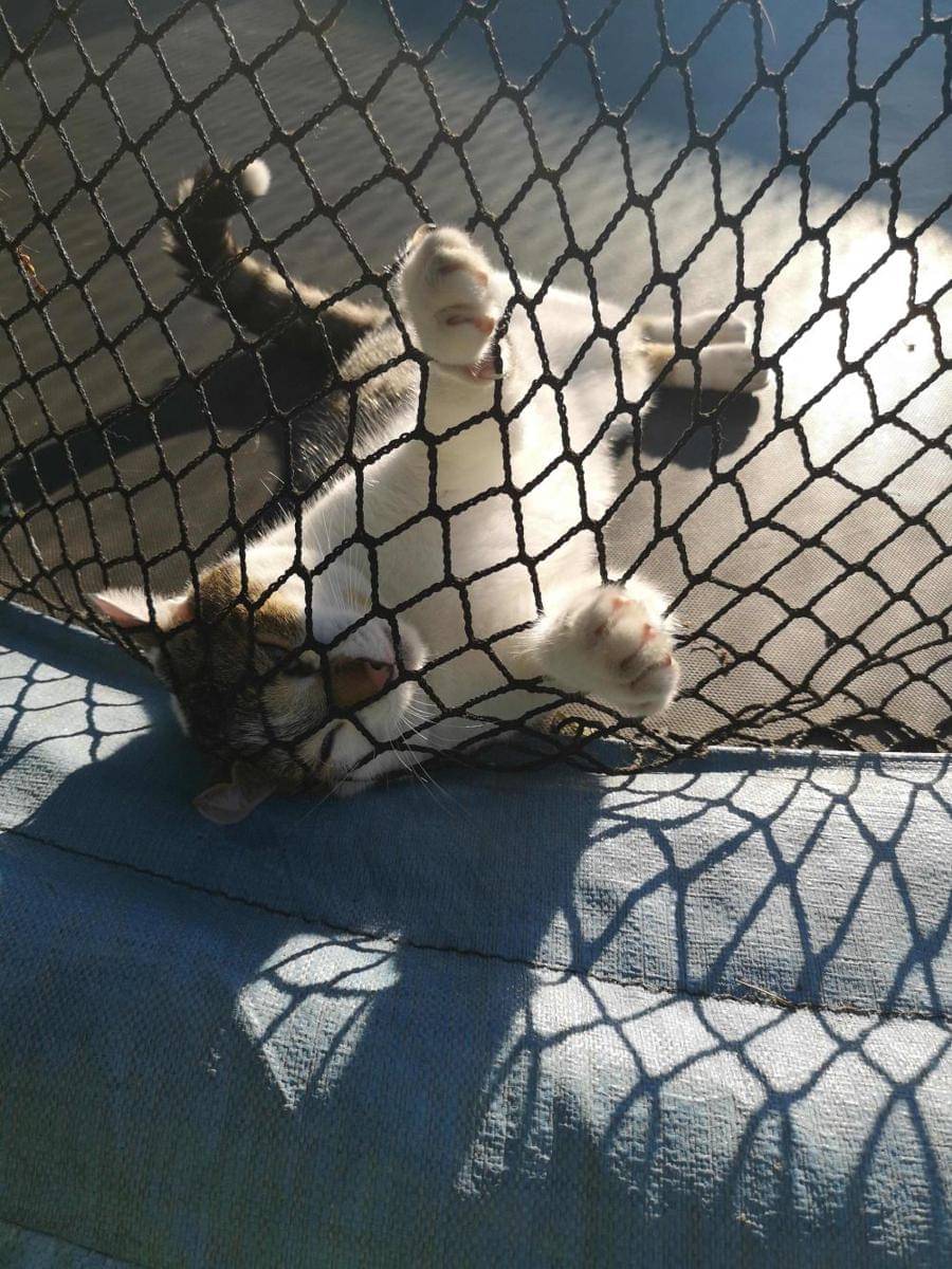7. Cuma foto kucing yang lagi tidur di trampolin. Walaupun ekspresinya agak lain, sih