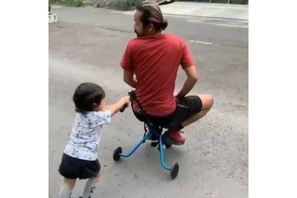 1. Waduh, jadi malah bapaknya yang naik sepeda dan anaknya yang ngedorong